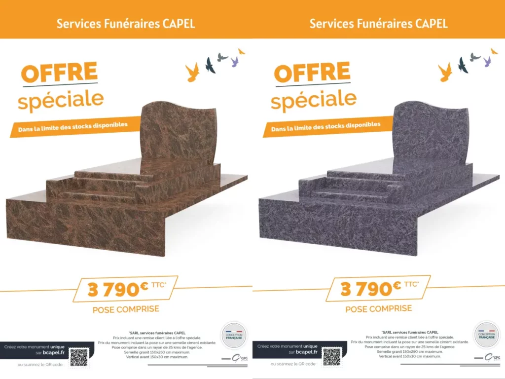Classiques ou élaborés, les modèles sont nombreux et peuvent être adaptés à une demande spécifique. Nous veillons à ce que chaque projet s’intègre bien à la concession et nous veillons également à respecter le règlement et le cahier des charges du cimetière.